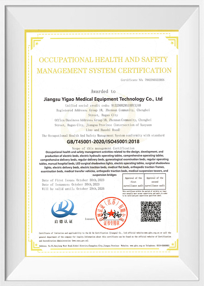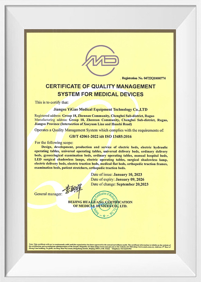 Registračný certifikát chirurgickej lampy bez tieňa