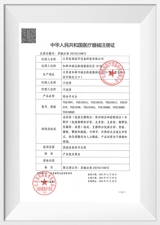 Osvedčenie o registrácii elektrického operačného stola