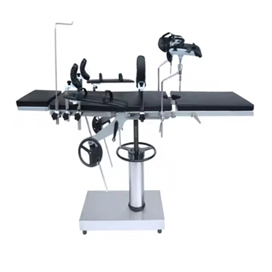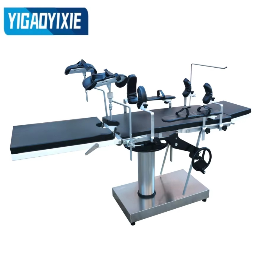 Operačný stôl YGS3002A General je sofistikované medicínske zariadenie určené na podporu tela pacienta počas operácie a je široko používané pri rôznych bežných chirurgických zákrokoch. Operačný stôl pozostáva z čela, chrbtovej dosky, bedrovej dosky, bedrovej dosky a integrálnej dosky na nohy. Má kompaktnú štruktúru a môže poskytnúť všestrannú podporu. Posteľ sa zdvíha a spúšťa pomocou systému kolies a náprav poháňaných veľkou otočnou skrutkou. Manuálne nastavenie je jednoduché a stabilné, čo zaisťuje bežné používanie aj bez napájania. Zdvíhanie chrbtovej dosky a pásového mostíka využíva šnekový prevodový mechanizmus na zabezpečenie presného a hladkého nastavenia, zatiaľ čo čelo postele je navrhnuté so špirálovým zámkom a doska nôh je ovládaná západkovým mechanizmom, ktorý sa pohodlne a rýchlo nastavuje, aby sa zabezpečilo, že pacient je v najlepšej chirurgickej polohe. Základňa a plášť stĺpika operačného stola sú vyrobené z nehrdzavejúcej ocele, ktorá má vynikajúcu odolnosť proti korózii a oxidácii, vďaka čomu je stále odolný a ľahko sa čistí aj po dlhodobom používaní. Celkový dizajn sa zameriava na bezpečnosť a stabilitu a poskytuje lekárom stabilnú operačnú platformu na zaistenie pohodlia a bezpečnosti pacientov.