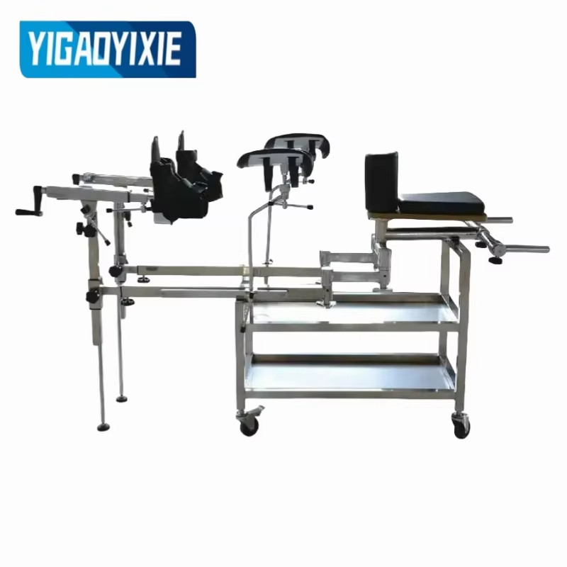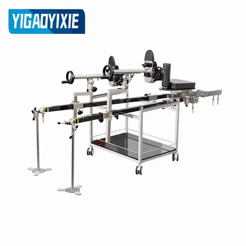 Tento chirurgický trakčný rám, navrhnutý tak, aby podporoval pacientov a ťahal ich dolné končatiny pri použití v spojení s operačnými stolmi počas chirurgických zákrokov, sa môže pochváliť prvotriednou konštrukciou s hlavným telom z uhlíkových vlákien a kovovými časťami z nehrdzavejúcej ocele 304, zatiaľ čo jeho kľúčové komponenty na nastavenie uhla sú upevnené čelnými zubami a precízne odliate z jedného kusu pre lepšiu stabilitu a odolnosť. Vďaka mechanickej prevodovke pre trakciu a 360° otočnému traktoru, ktorý umožňuje flexibilné polohovanie v rôznych polohách a uhloch, je plne kompatibilný so strojmi s C-ramenom v akejkoľvek polohe bez akýchkoľvek slepých miest alebo prekážok, čo z neho robí ideálny pomocný nástroj pre širokú škálu chirurgických scenárov.